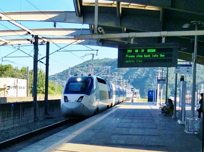 Soon, we were on the KTX speeding at 300 kph from Seoul to Ulsan! We were going too fast to take good photos!